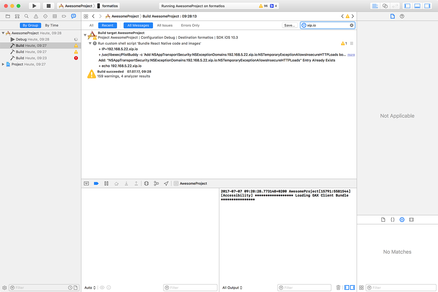 打开 报告导航器,选择最后一次 构建,搜索 IP= 后跟的 IP 地址。内嵌在应用中的 IP 地址应与机器 IP 一致。